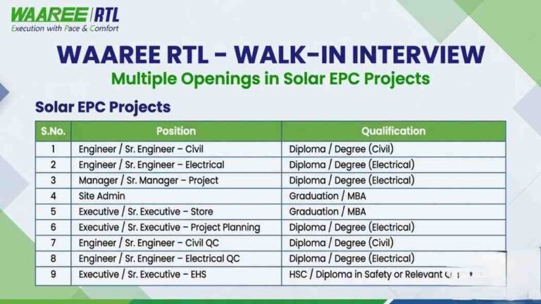 Waaree RTL Walk-In Interview April | For Solar EPC Projects in Multiple Location Company Name Waaree RTL Waaree RTL is …