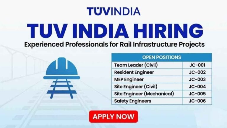 TUV India Urgent Requirement 2026 | For Rail Infrastructure Projects Company Name TUV India TUV India is hiring experienced professionals …
