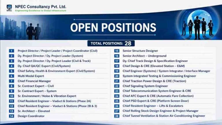 NPEC Consultancy Requirement 2026 | For Metro, Rail, and Large Infrastructure Projects Company Name NPEC Consultancy Pvt. Ltd NPEC Consultancy …