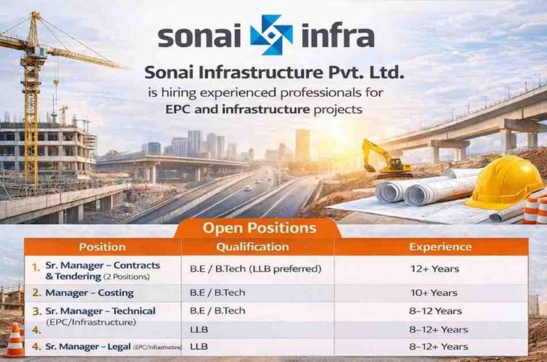 Sonai Infrastructure Pvt Ltd Vacancy | B,E / B,tech, LLB | For EPC and Infrastructure Projects Company Name Sonai Infrastructure …