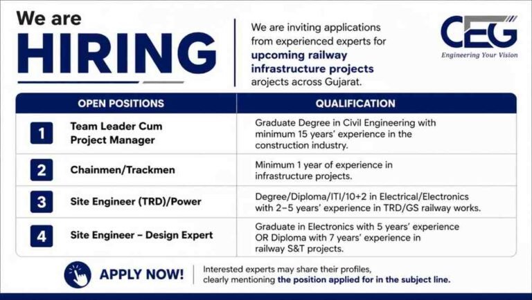 Consulting Engineers Group Recruitment | Upcoming Detailed Engineering Design of a Highway Project Company Name Consulting Engineers Group We are inviting …