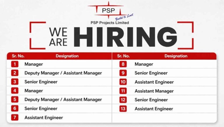 PSP Projects Limited Walk In Interview | बंपर भर्ती अप्रैल 2026 Company Name PSP Projects Limited PSP Projects Ltd Is …