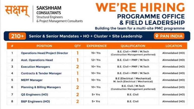 Sakshham Consultants Requirement 2026 | For Industrial, Institutional, And Commercial-Residential Projects Company Name Sakshham Consultants Sakshham Consultants Is Hiring Experienced …