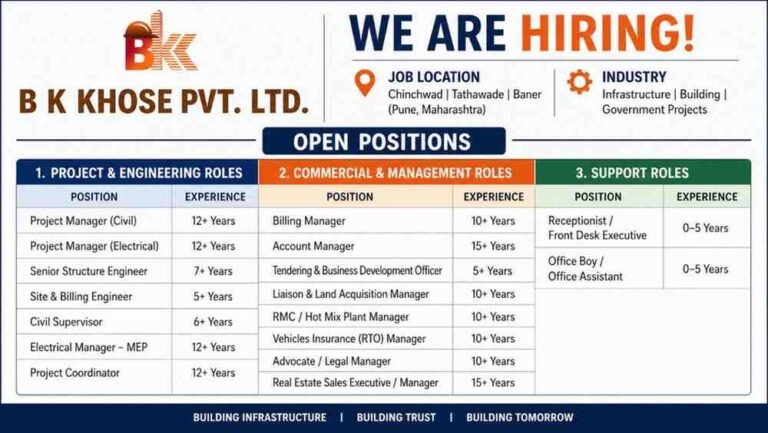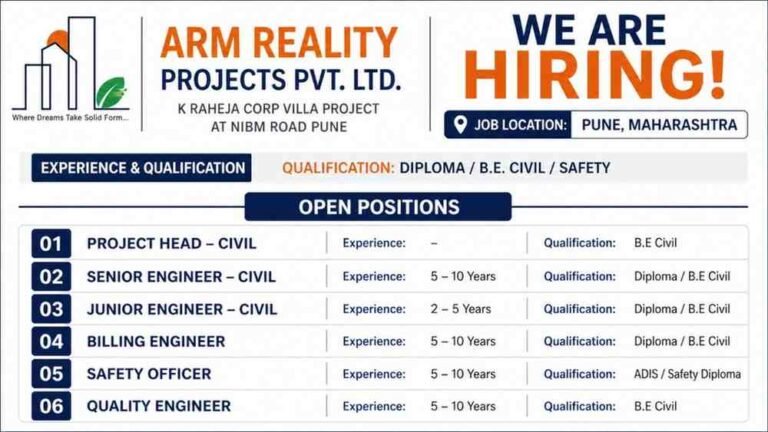 KCC Buildcon Pvt Ltd Vacancy | Diploma, B.tech in Civil Engineering Company Name KCC Buildcon Pvt. Ltd. We are looking …