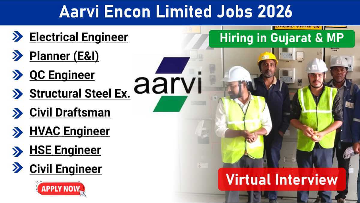 Aarvi Encon Limited Jobs 2026 | Electrical, Civil & HSE Engineers Hiring | Virtual Interview Jobs | Gujarat & MP