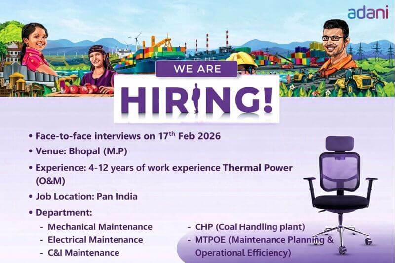 Adani Power Limited is inviting driven Operations & Maintenance professionals who are eager to take on larger responsibilities and grow with a PAN-India organisation shaping India’s energy future. This recruitment drive is focused on experienced professionals from Thermal Power Plant Operations & Maintenance.