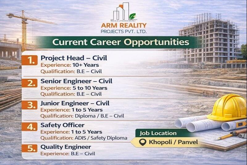 ARM Reality Projects Pvt Ltd Vacancy | Khopoli and Panvel Projects | Construction Job