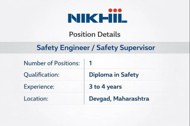 Nikhil Group Recruitment 2026 | Safety Engineer / Safety Supervisor In Diploma in Safety Company Name Nikhil Group Nikhil Group …