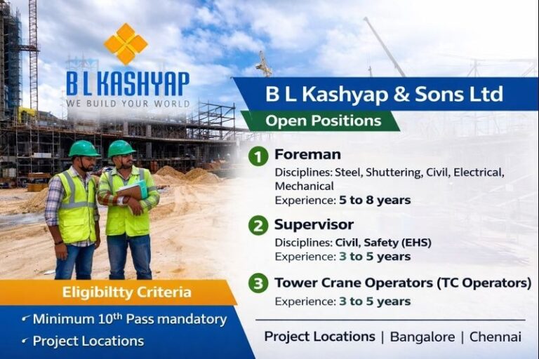 BL Kashyap & Sons Ltd Recruitment 2026 | Residential, Commercial, institutional, and industrial Projects Company Name BL Kashyap & Sons …