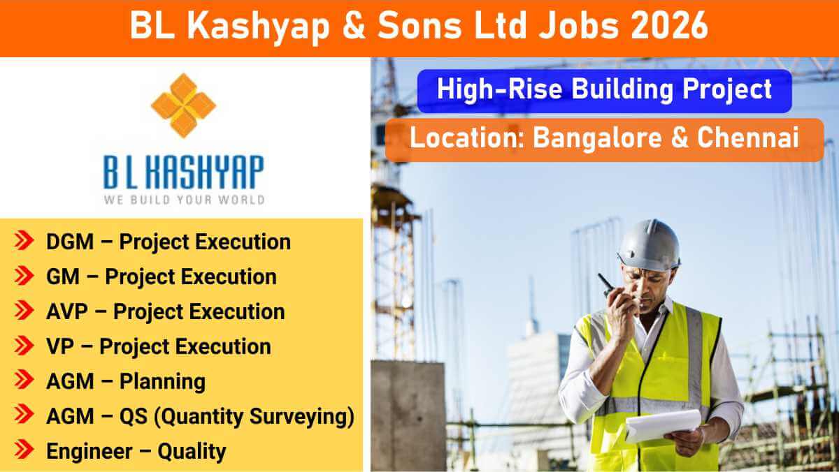 BL Kashyap & Sons Ltd Jobs 2026 | Urgent Civil Engineering Vacancies | Hiring for Bangalore & Chennai Projects