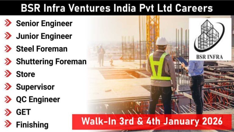 BSR Infra Ventures India Pvt Ltd Careers | Steel & Shuttering Foremen, Engineers, Supervisors | Hyderabad | Walk-In 3rd & …