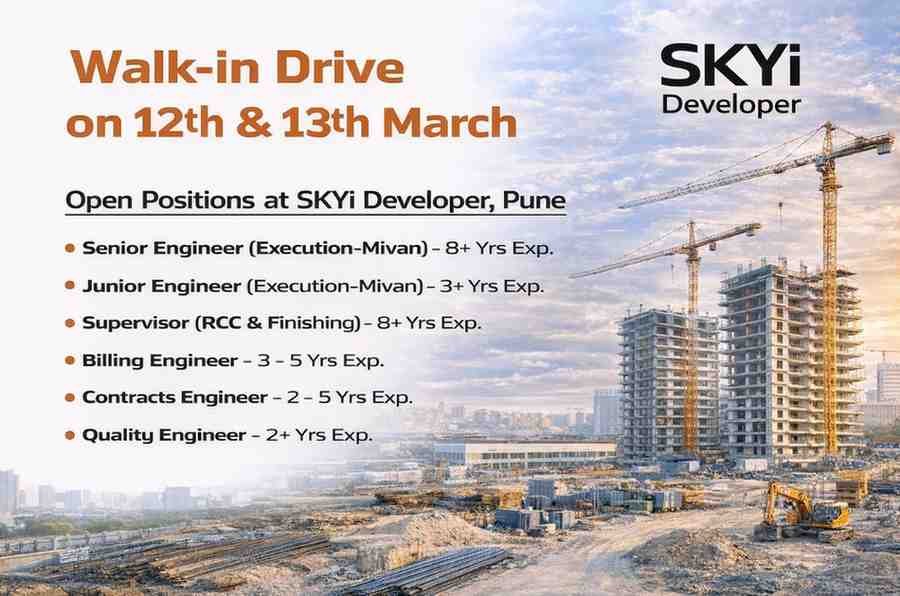 SKYi Developers Walk In Drive March 2026 | Construction and real estate Projects | Construction Job