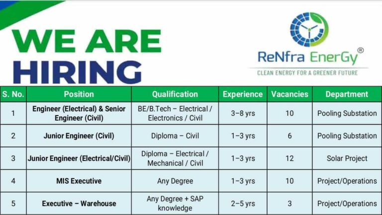 Renfra Energy Hiring 2025 | 50+ Jobs in Solar & Renewable Projects Tamil Nadu Company …