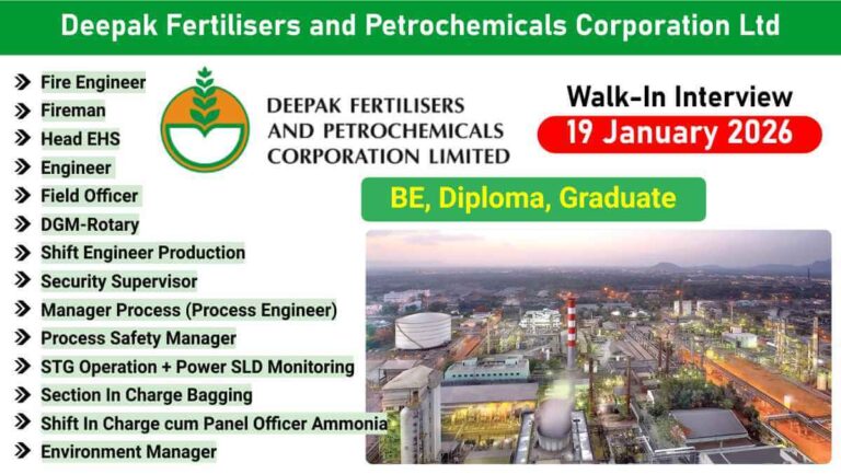 Deepak Fertilisers and Petrochemicals Corporation Ltd | Engineers, Safety, Production Roles | Odisha Jobs | Walk-In Interview 19th January 2026 …