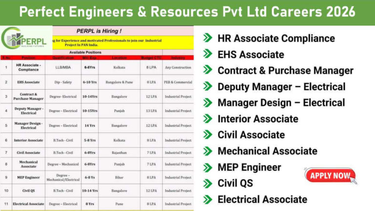 Perfect Engineers & Resources Pvt Ltd Careers 2026 | Civil, Mechanical, Electrical Associates & Managers | Apply Now Company Name …