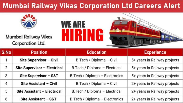 Mumbai Railway Vikas Corporation Ltd Careers Alert | Civil, Electrical & S&T Site Supervisors Needed for Railway Projects Company Name …