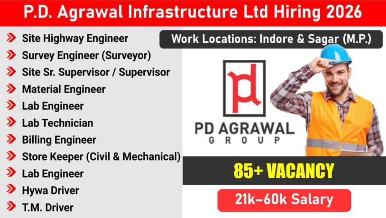P.D. Agrawal Infrastructure Ltd Hiring 2026 | 85+ Positions with 21k–60k Salary | National Highway Project Jobs in MP Company …