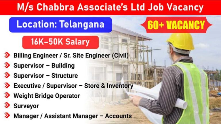 M/s Chabbra Associate’s Ltd Job Vacancy | 60+ Openings with 16K–50K Salary | Billing Engineers, Site Supervisors & Managers | …
