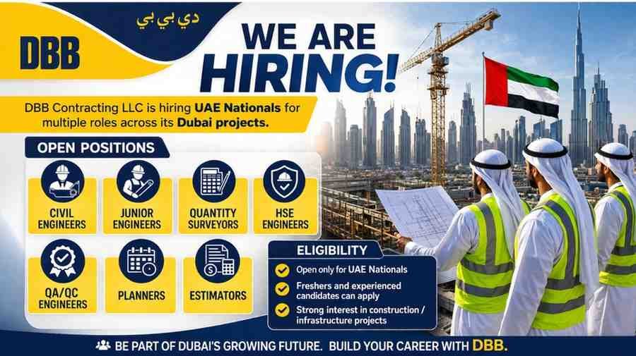 DBB Contracting LLC is hiring UAE Nationals for multiple roles across its Dubai projects.
