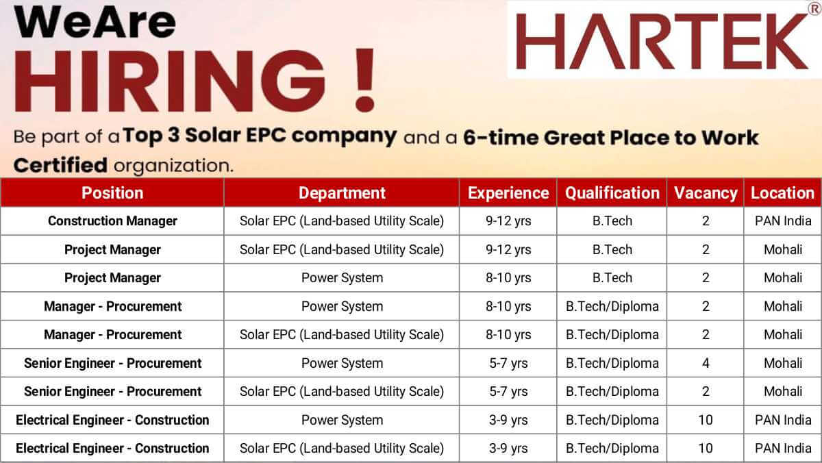 Hartek Group Recruitment 2026 | B.Tech & Diploma Engineers & Managers Needed for Solar & Power Projects | High-Paying EPC Jobs