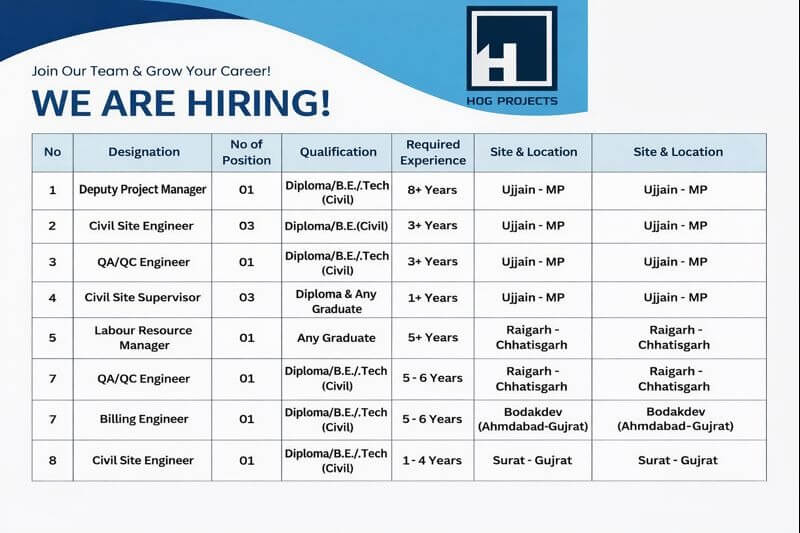HOG Projects Recruitment 2026 | For Government high-rise Building Projects