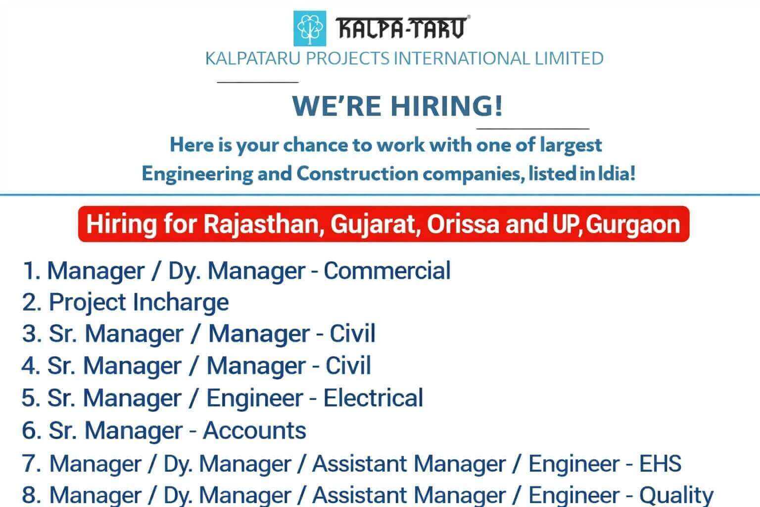Kalpataru Projects International Ltd Vacancy | Construction Job