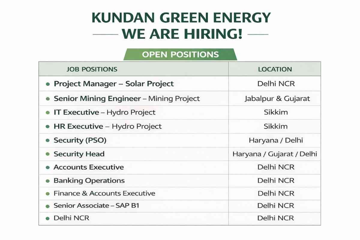 Kundan Green Energy Recruitment 2026 | upcoming Solar, Mining, Hydro, Security, Finance & SAP Projects