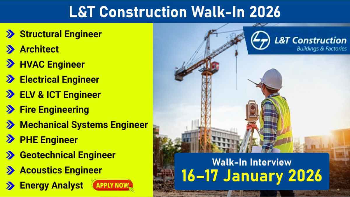 L&T Construction Walk-In 2026 | Architecture, Fire, PHE, Energy & Acoustics Experts Wanted | Walk-In Interview on 16 & 17 January