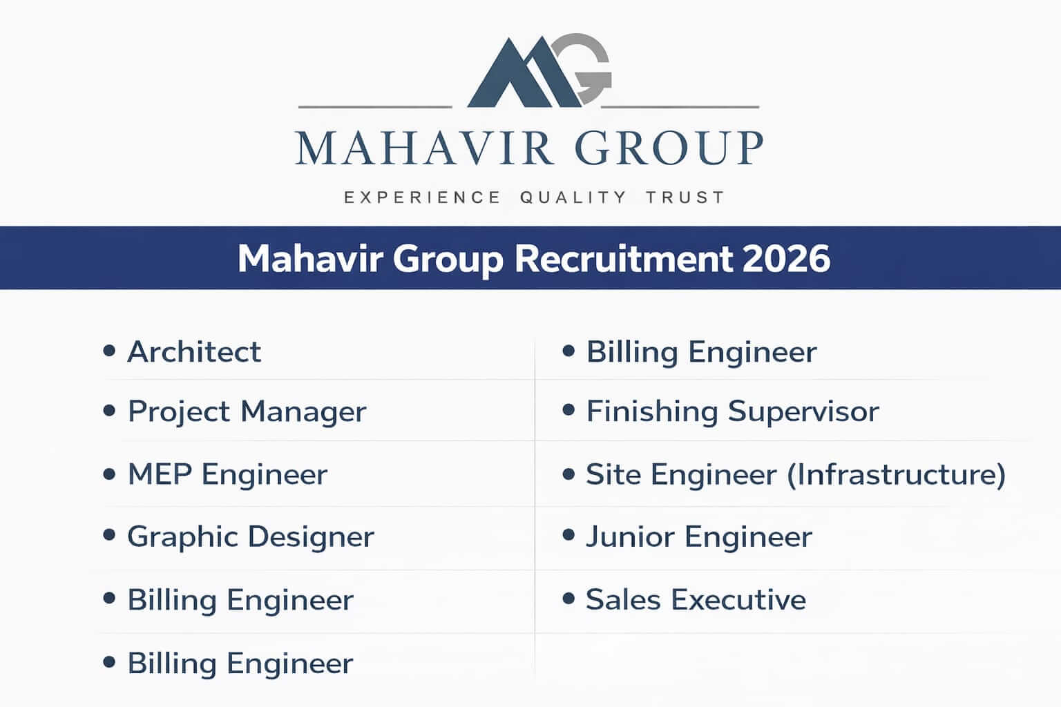 Mahavir Group Recruitment | For multiple positions including Architect, Project Manager, MEP Engineer, Billing Engineer