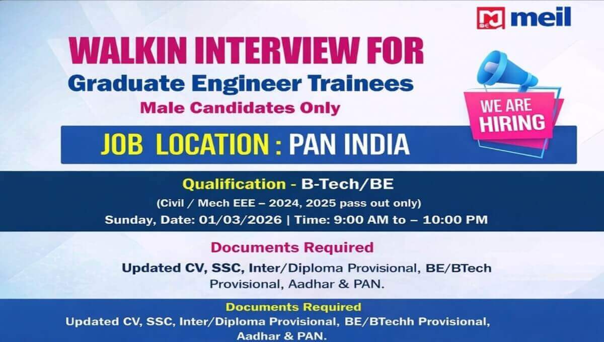 Megha Engineering Walk In Interview | Graduate Engineer Trainees | Civil / Mechanical / EEE