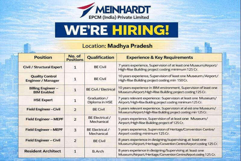 Meinhardt EPCM India Private Limited Recruitment | High-Rise, and Heritage Projects in Madhya Pradesh