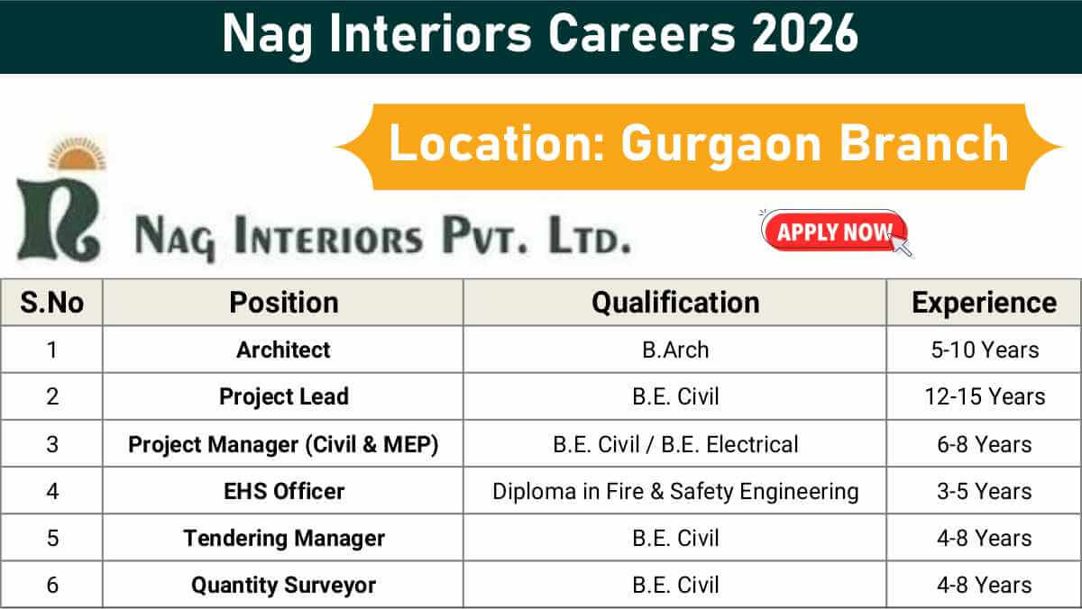 Nag Interiors Careers 2026 | Tendering Manager, Quantity Surveyor & Project Manager Openings