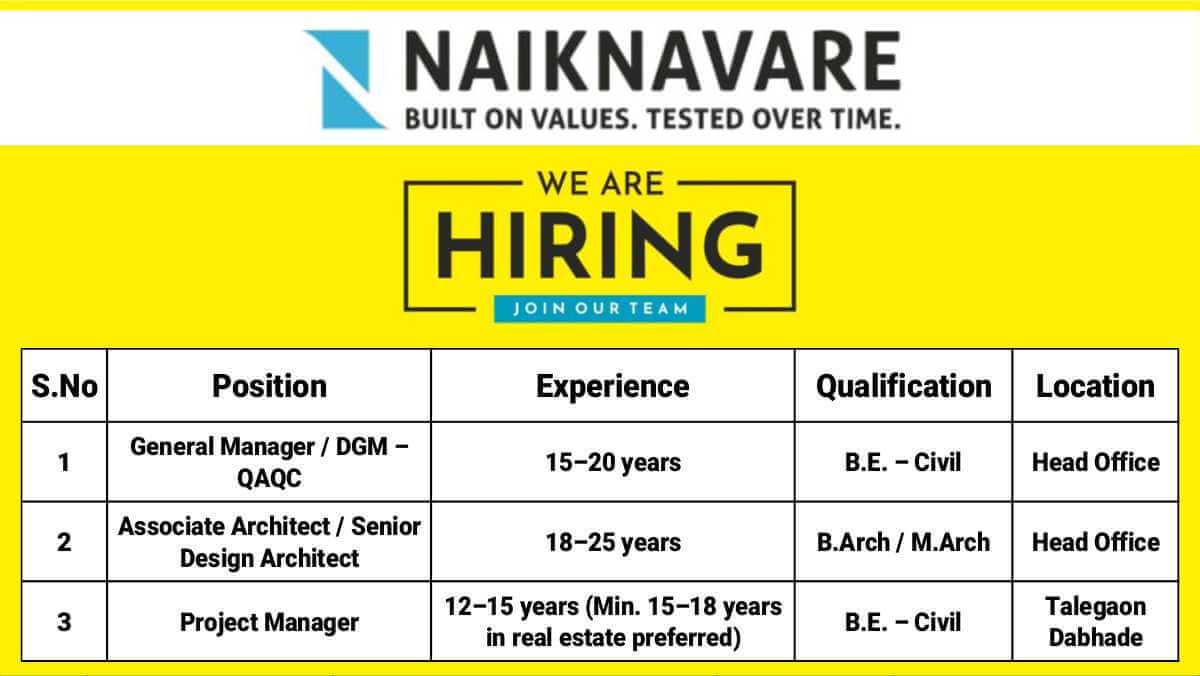 Naiknavare Developers Pvt Ltd Vacancy 2025 | For High-Quality Residential, Commercial, and Township Projects