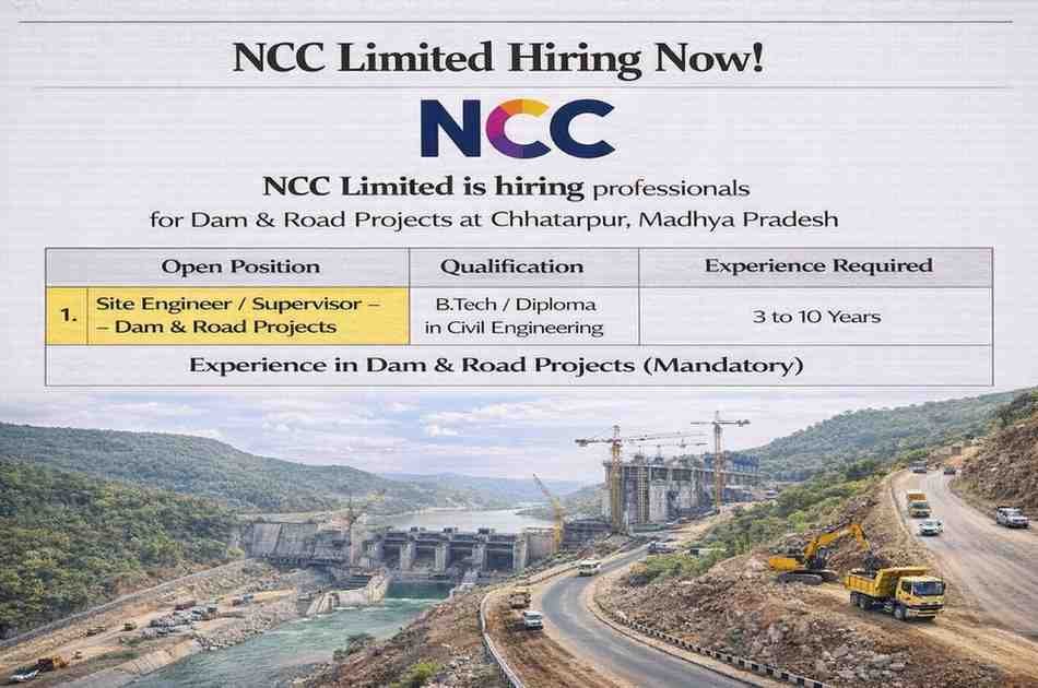 NCC Limited Recruitment 2026 | For Dam & Road Projects at Chhatarpur, Madhya Pradesh