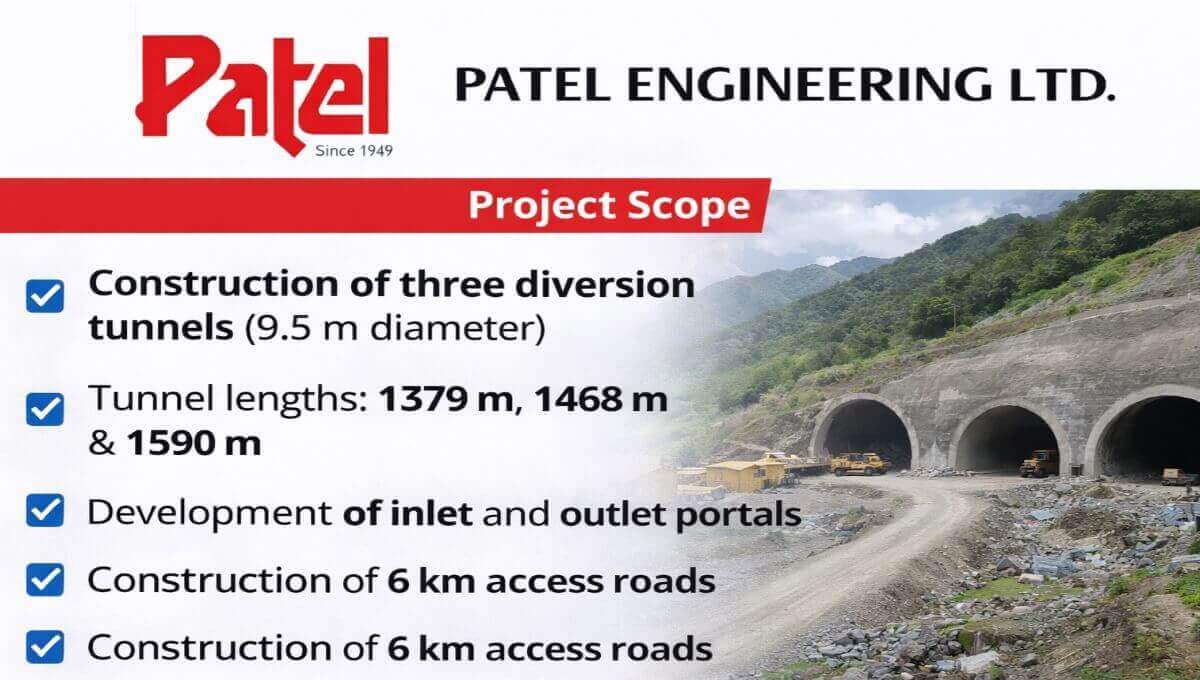 A major development in the hydro infrastructure sector — Patel Engineering Ltd. has secured a significant civil contract valued at ₹910.08 Crore (including GST) from Himachal Pradesh Power Corporation Limited (HPPCL).