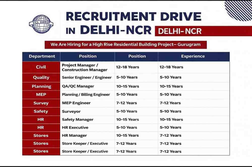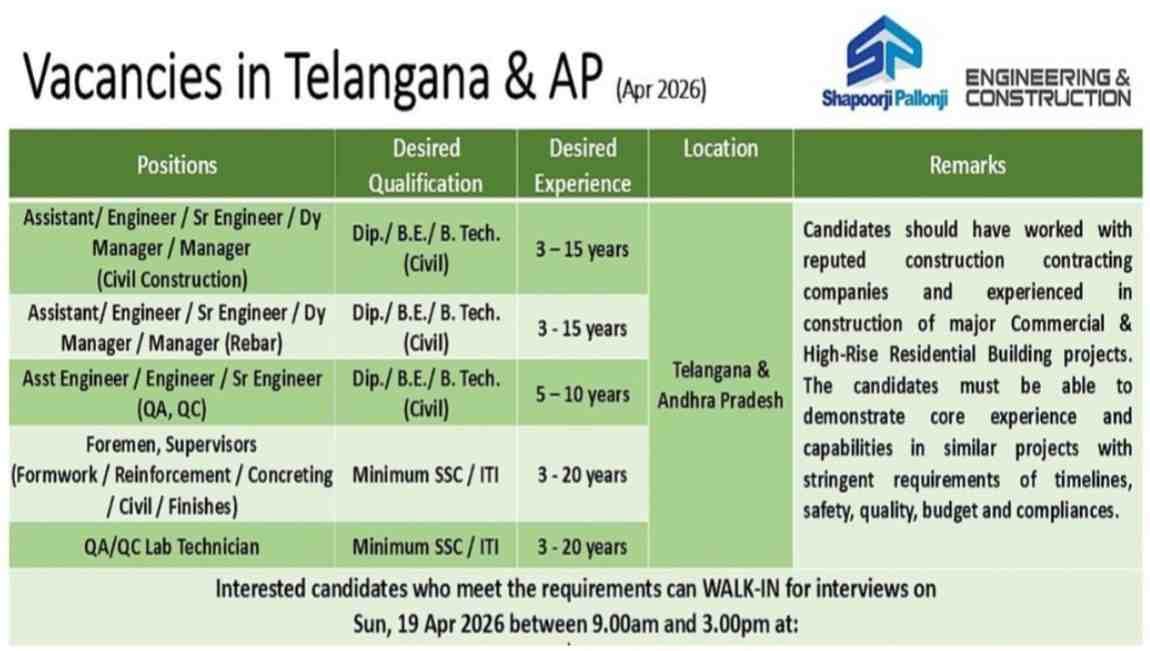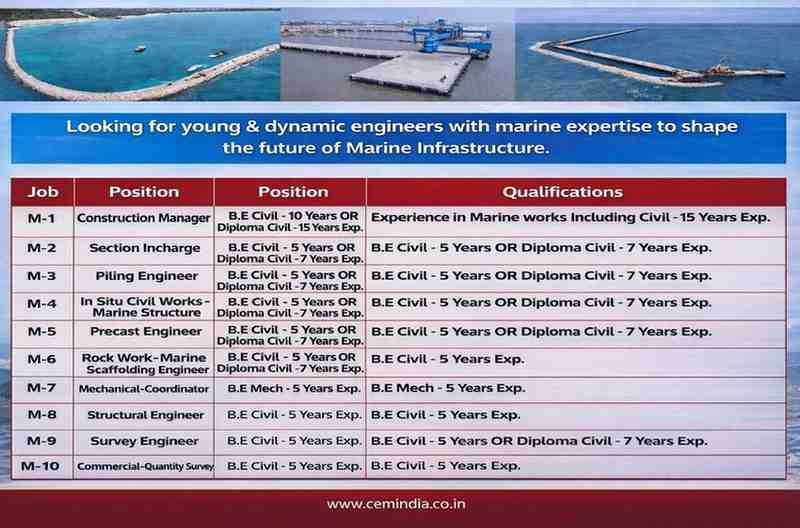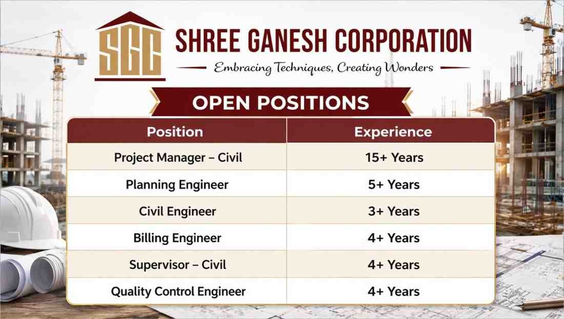 Note: Candidates should have working experience in Road & Highway Projects and be willing to work anywhere in India.
