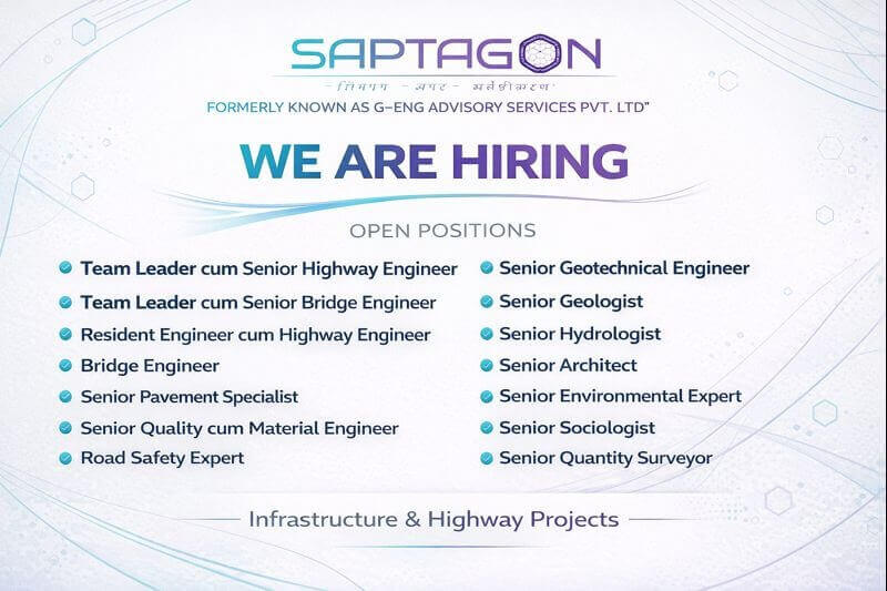Saptagon Asia Pvt Ltd. is hiring highly experienced senior engineering and domain experts for prestigious Pan-India infrastructure projects in Highways, Bridges, and Allied Engineering disciplines.