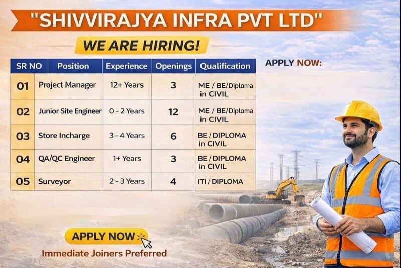 Shivvirajya Infra Pvt Ltd Vacancy | Government Water Resources & Irrigation Pipeline Projects