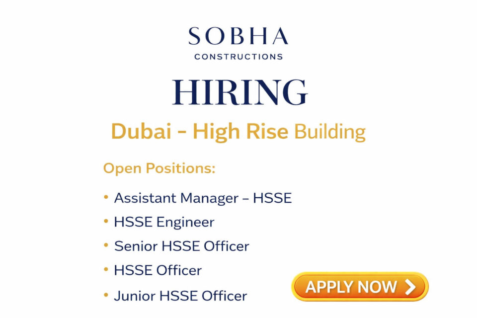 Sobha Constructions has released an official hiring notification for Dubai location. The openings are specifically for High Rise Building projects under HSSE roles.