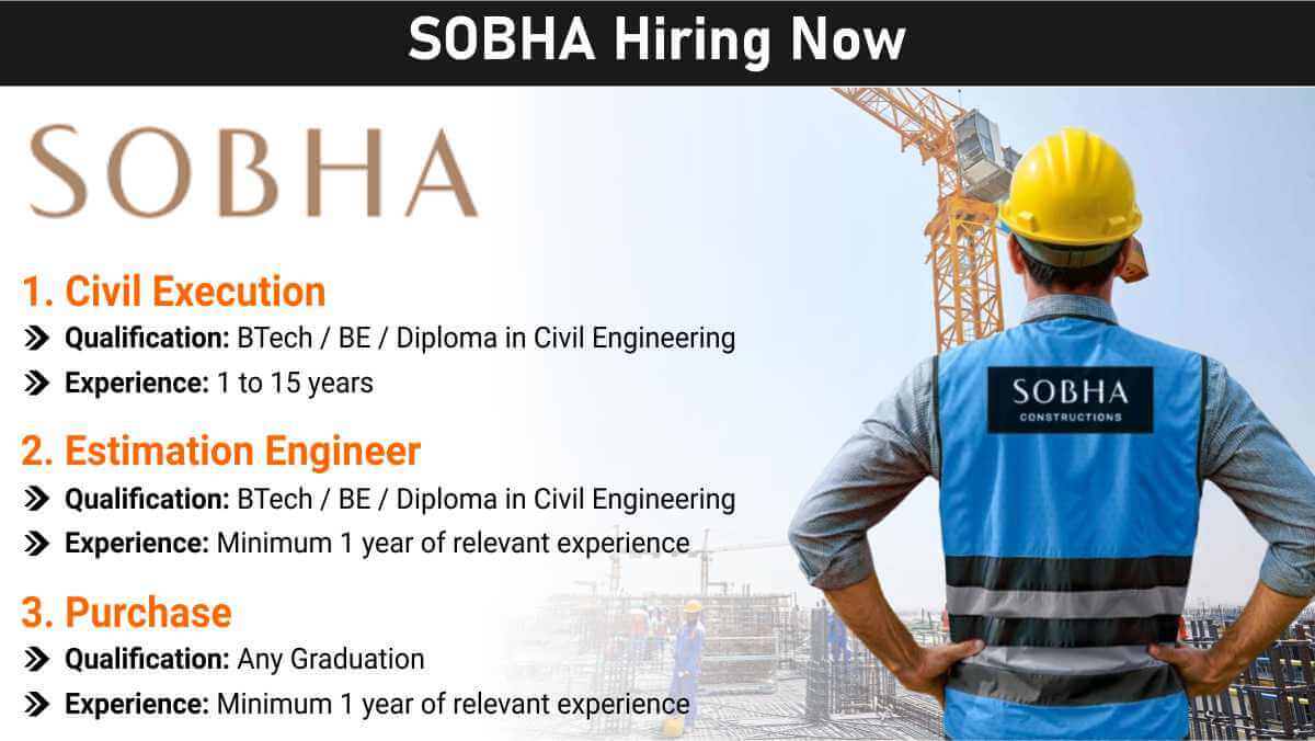SOBHA Hiring Now | Civil Execution, Estimation Engineer & Purchase Jobs | Palakkad