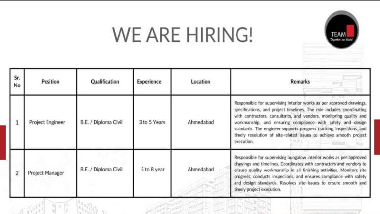 Team PMC Hiring Alert 2026 | Interior Project Engineer & Manager Vacancies | B.E. & Diploma | Jobs in Ahmedabad …