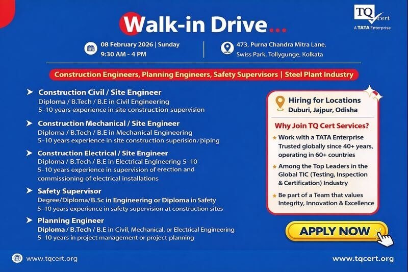 We are looking for skilled Construction, Planning, and Safety professionals who want to grow their careers with a globally trusted organization associated with a TATA Enterprise and a leader in the Testing, Inspection & Certification (TIC) Industry.