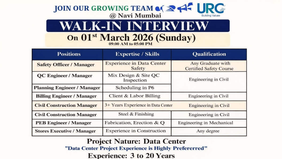 URC Construction Walk In Interview | Ongoing Data Center Projects in Navi Mumbai | Construction Job