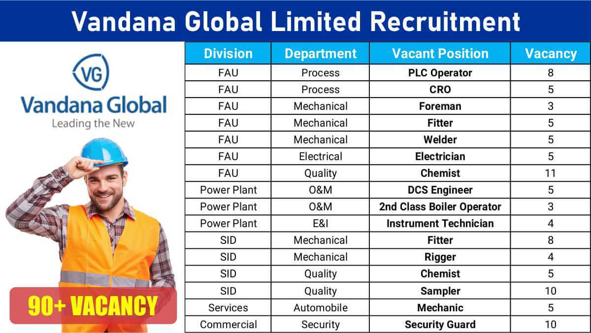 Vandana Global Limited Recruitment | Power Plant, FAU & SID Massive Hiring | 90+ Vacancies | ITI, Diploma