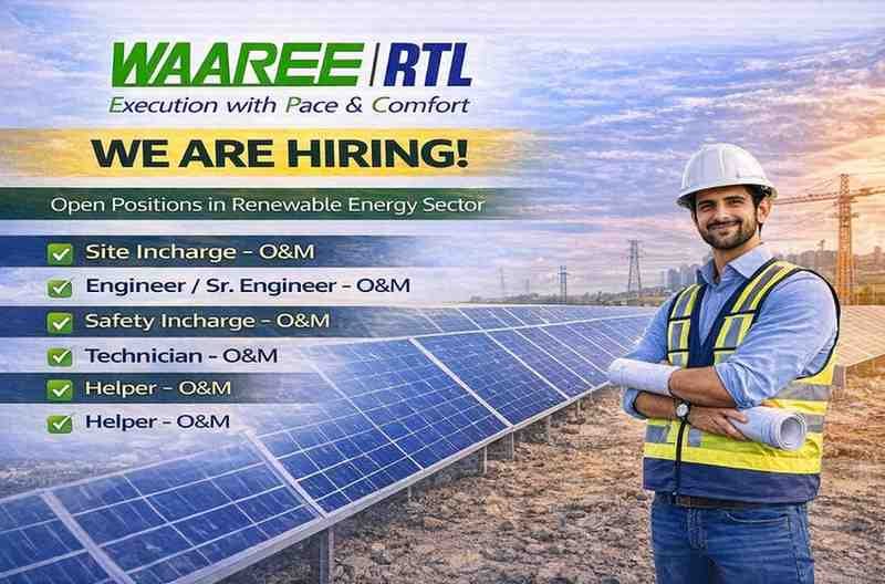 Waaree Renewable Technologies Ltd is hiring professionals for Operations & Maintenance (O&M) roles across multiple solar project sites in India. This is a great opportunity to work in the renewable energy sector and contribute to large-scale solar power projects.
